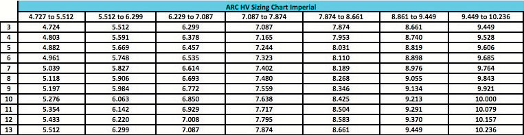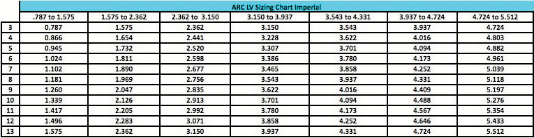 1. Measure the Shaft Diameter and choose the correct size "ARC Earthring" to fit your size of shaft diameter (e.g. for 3,543" shaft diameter you would choose the "ARC 3,150" to 3,937"). Then check the "ARC Chart" of that size ARC Earthring in Imperial or Metric sizes, choose a size 0,079" larger than your shaft size (e.g. if your shaft is measured at 3,543" you would choose 3,622") and see the corresponding "ARC LINE" number on that chart, record this number, or the closest number to it.